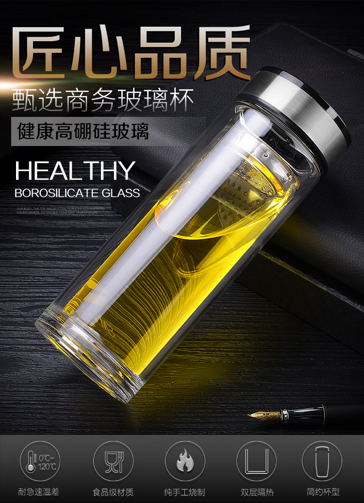 雙層厚底透明玻璃杯商務禮品高硼硅水杯廣告杯批發(fā)定制logo