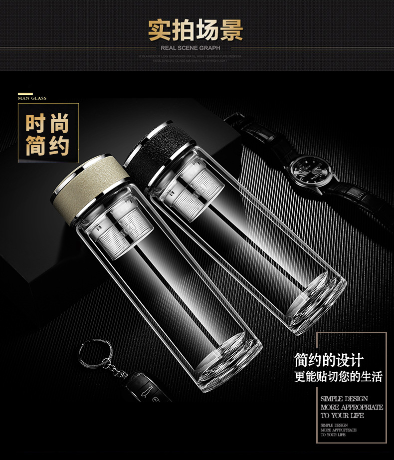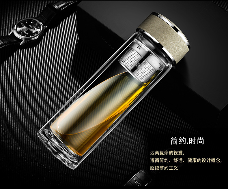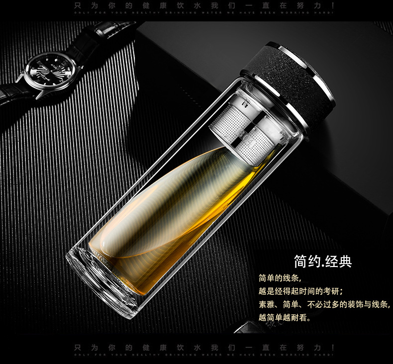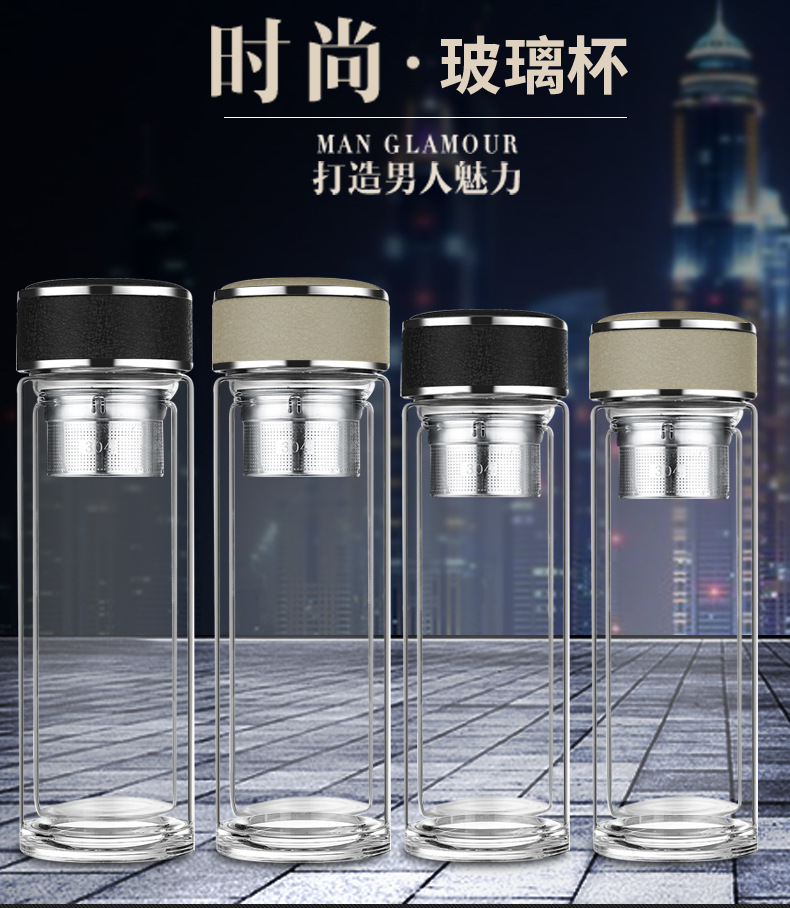 廠家直銷新款創(chuàng)意高端商務(wù)雙層玻璃杯帶濾網(wǎng)辦公水杯定制