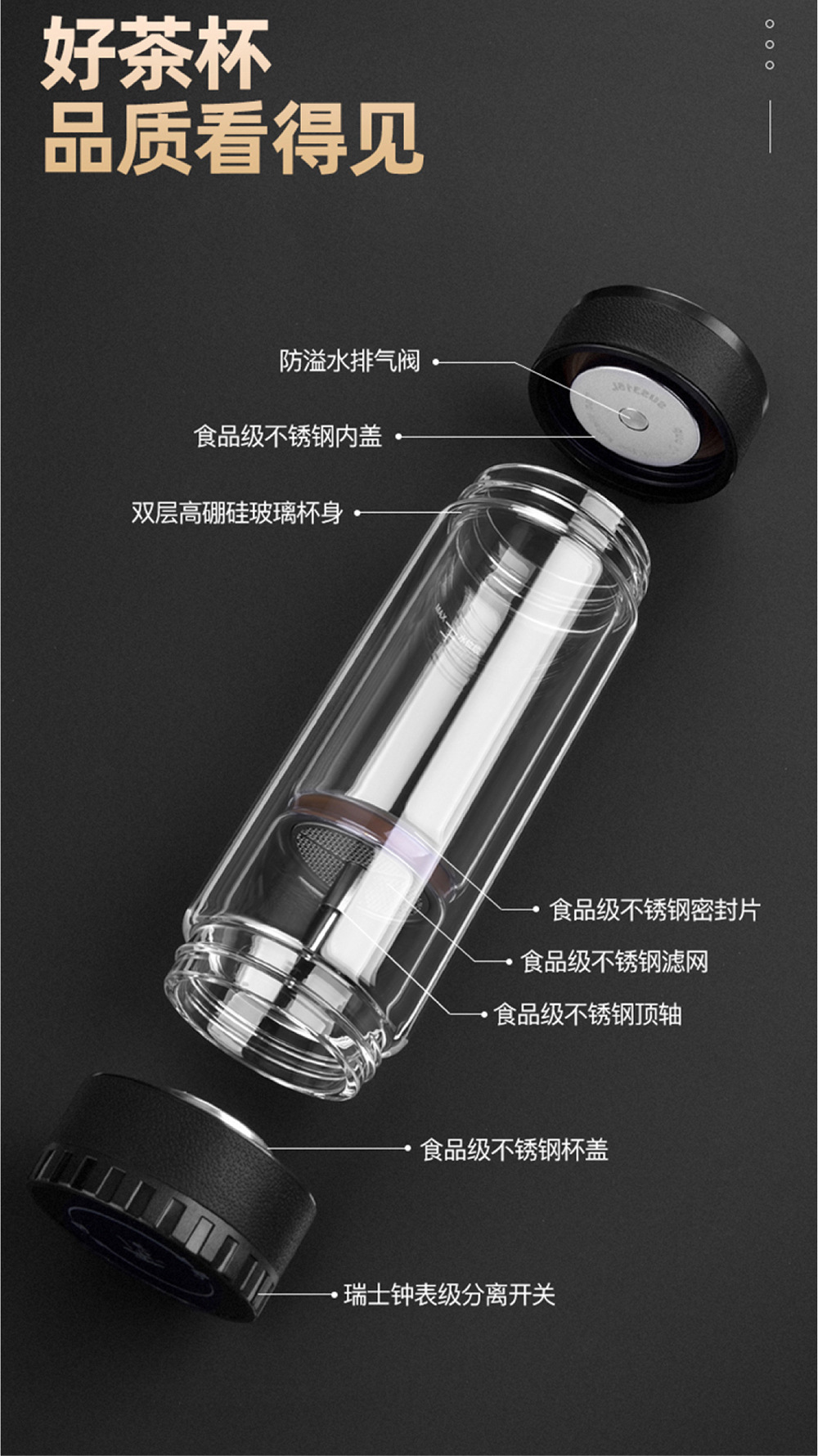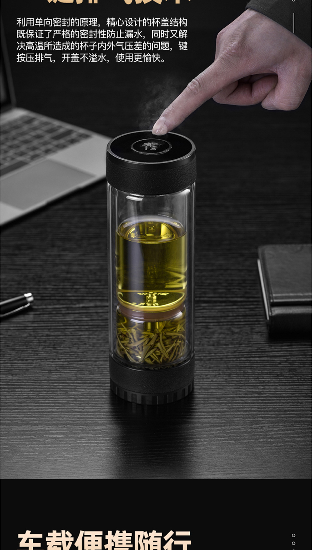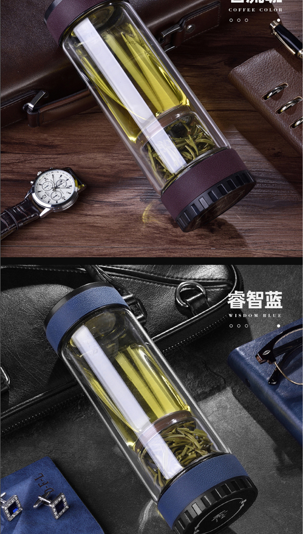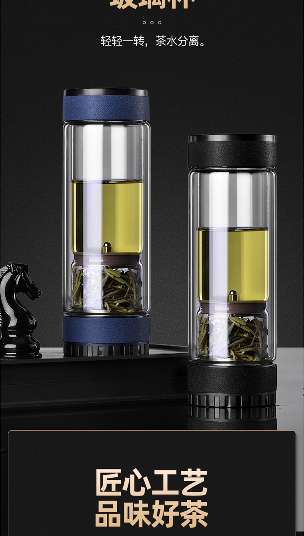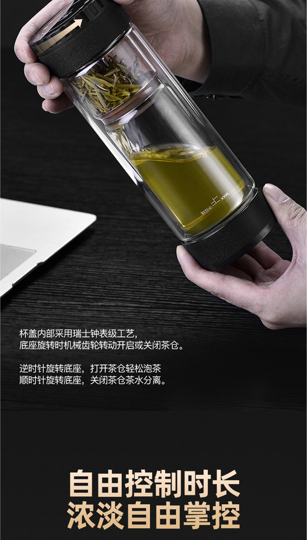 茶水分離泡茶師商務雙層玻璃杯定制禮品杯旋轉開關茶杯印logo水杯