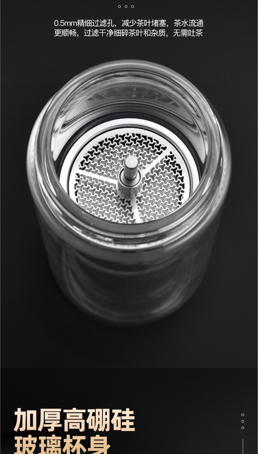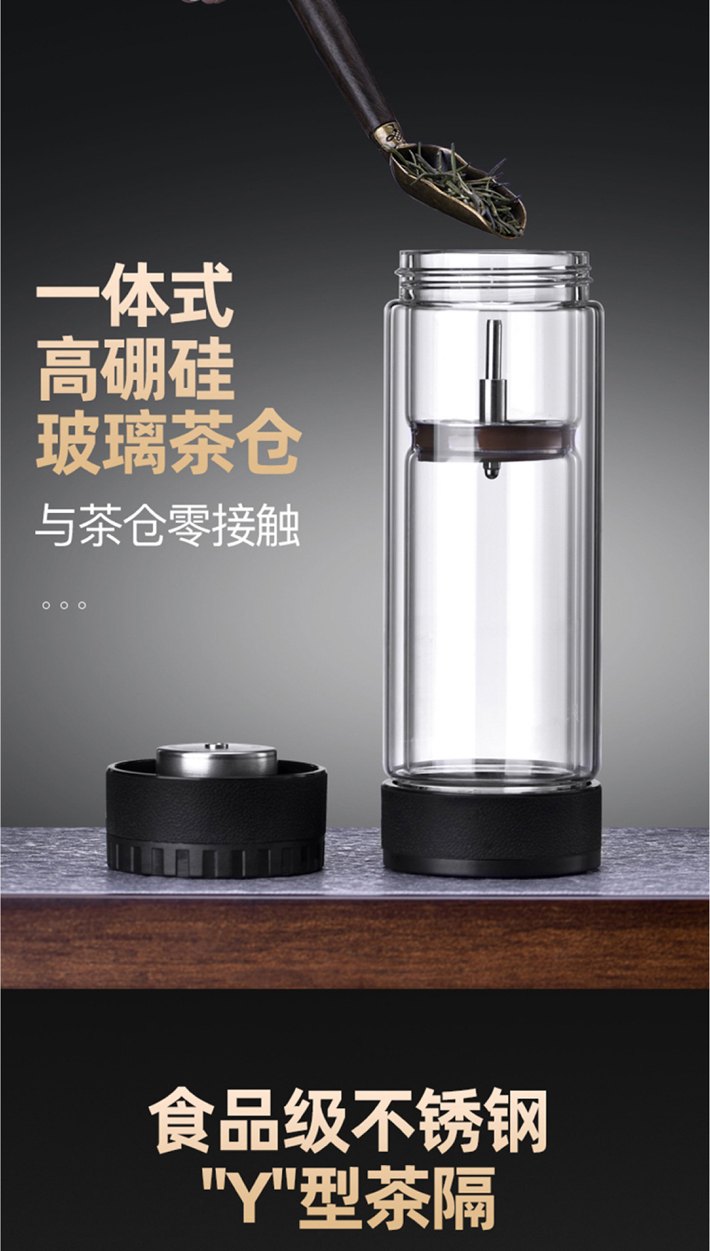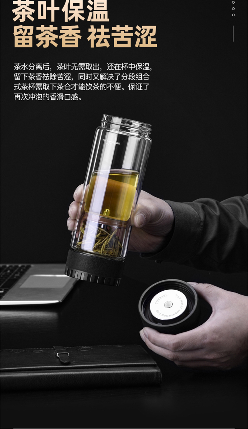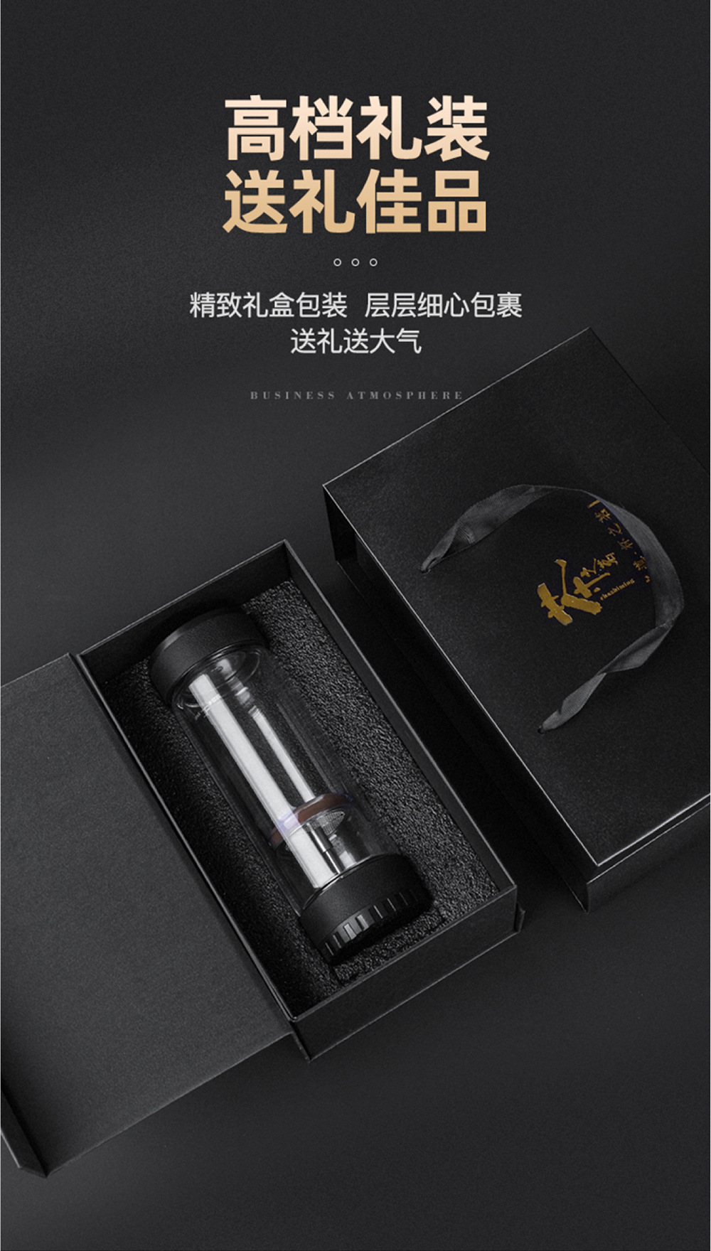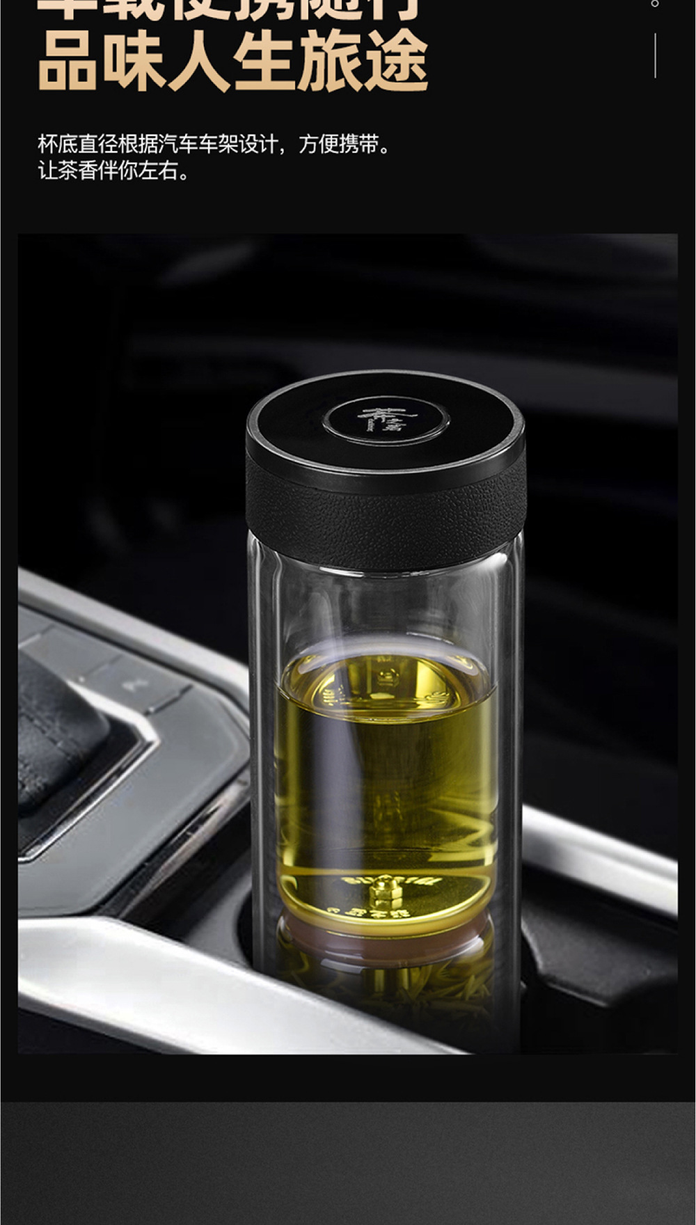 茶水分離泡茶師商務雙層玻璃杯定制禮品杯旋轉開關茶杯印logo水杯