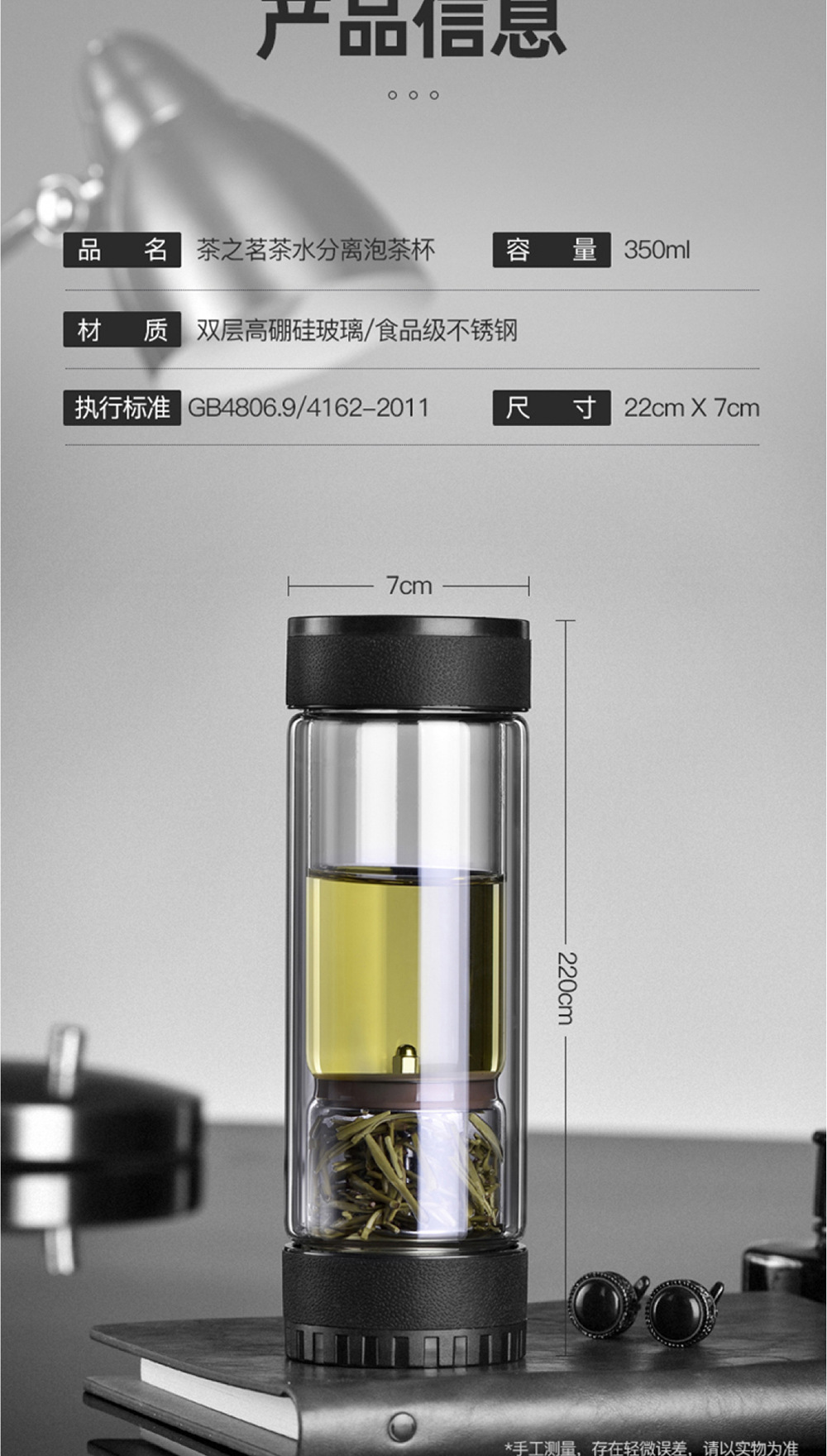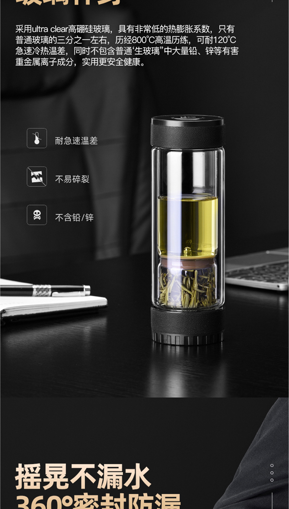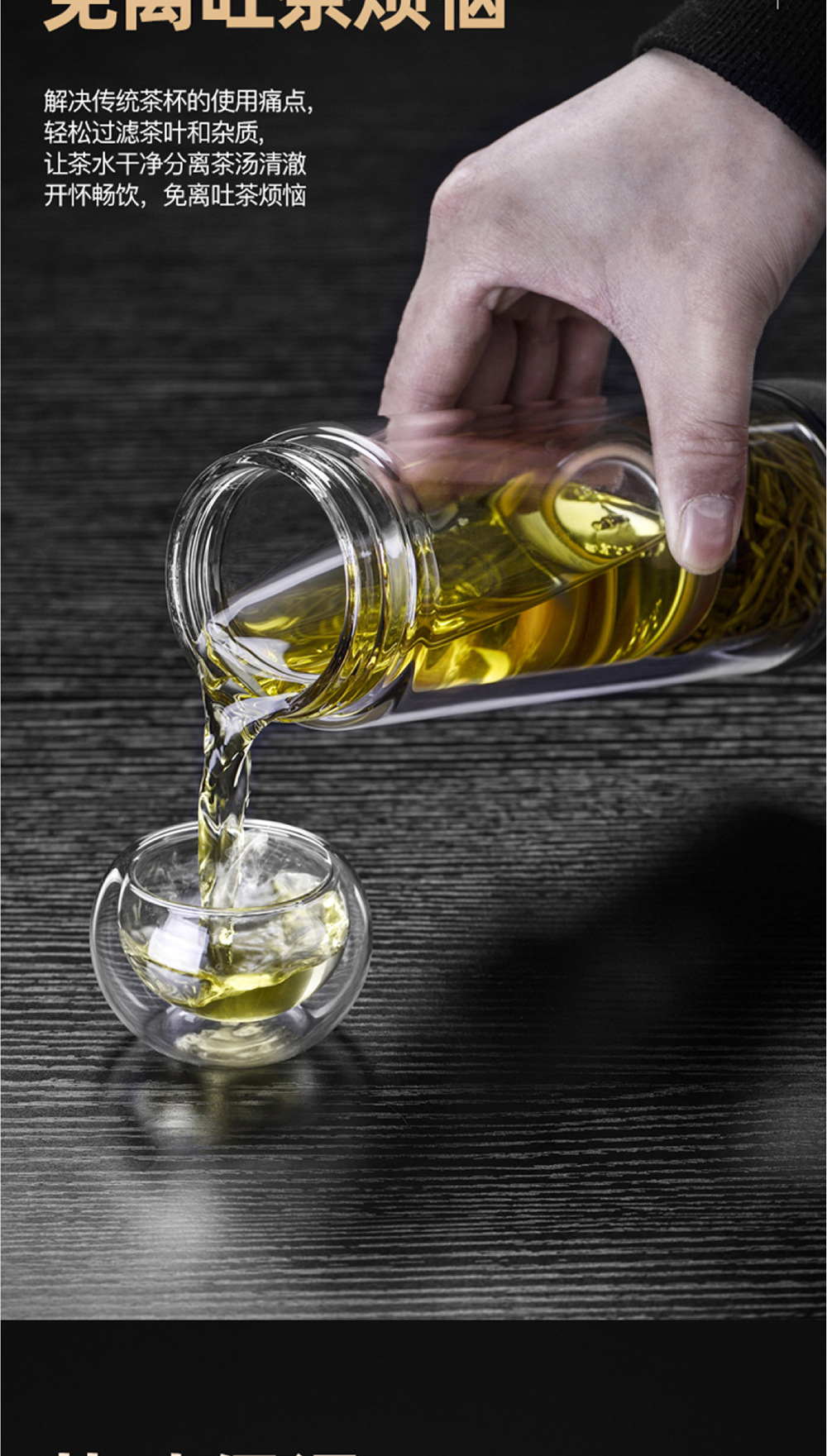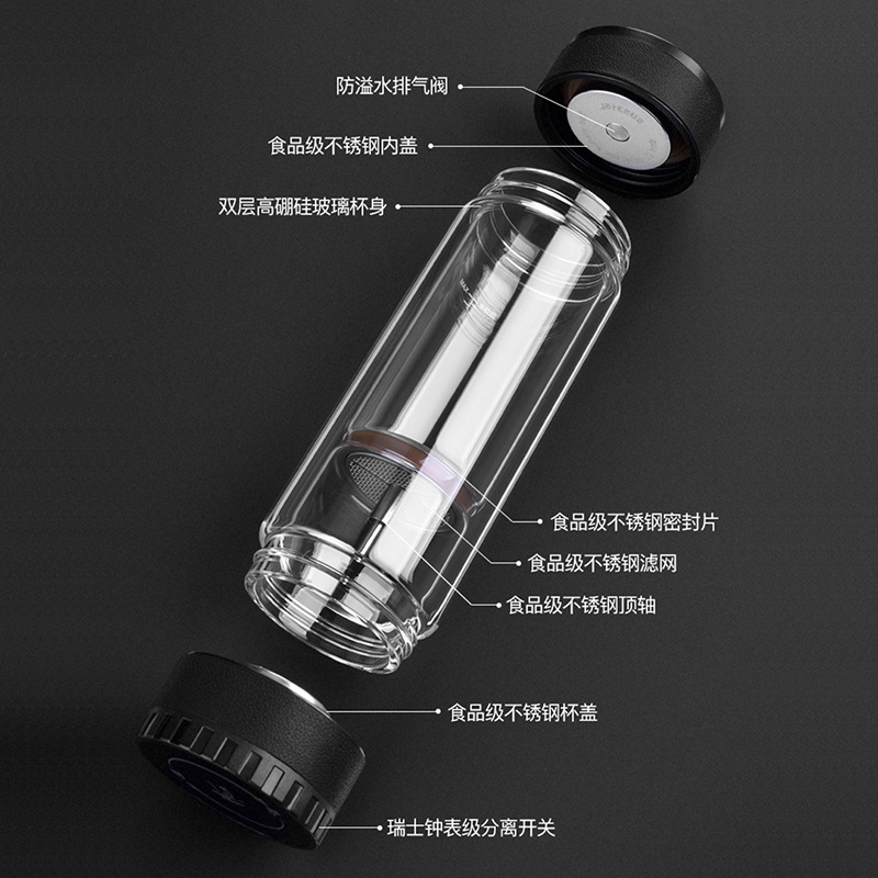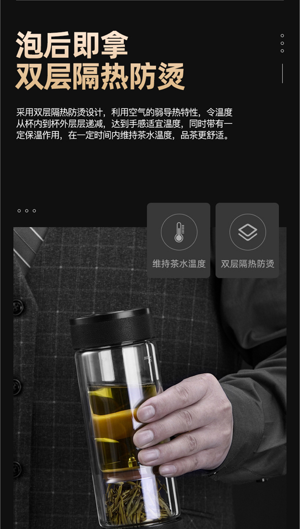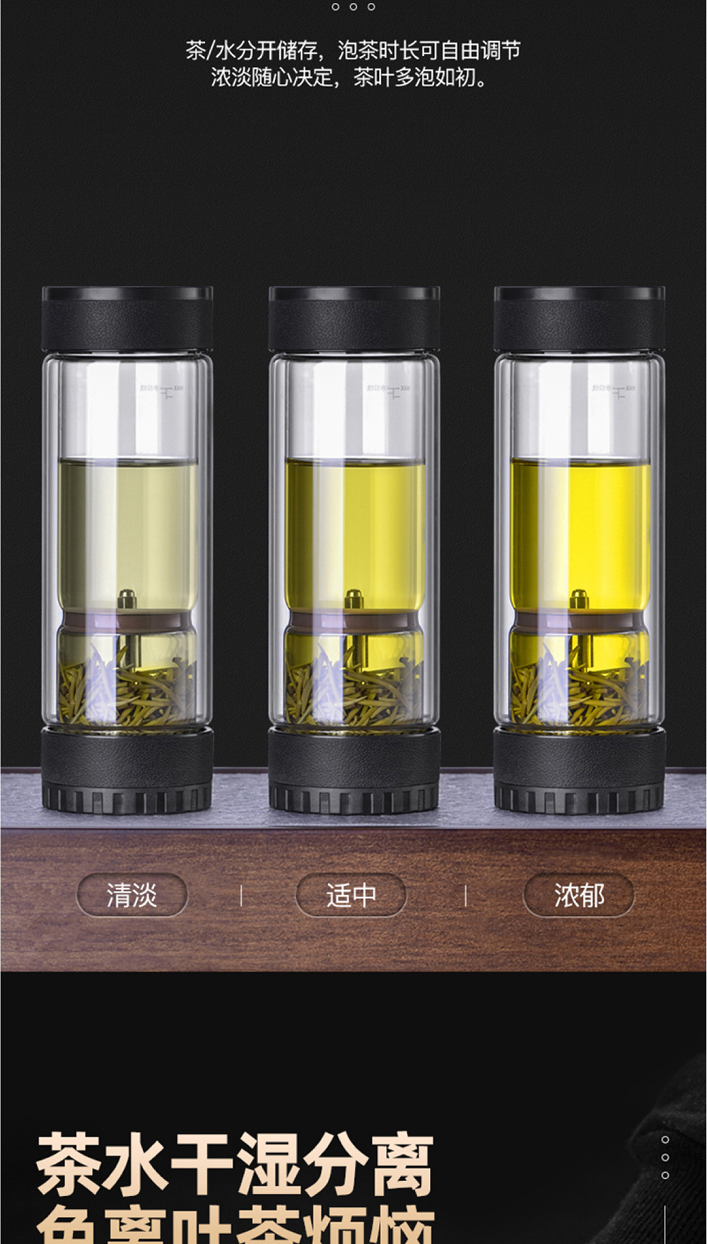 茶水分離泡茶師商務雙層玻璃杯定制禮品杯旋轉開關茶杯印logo水杯