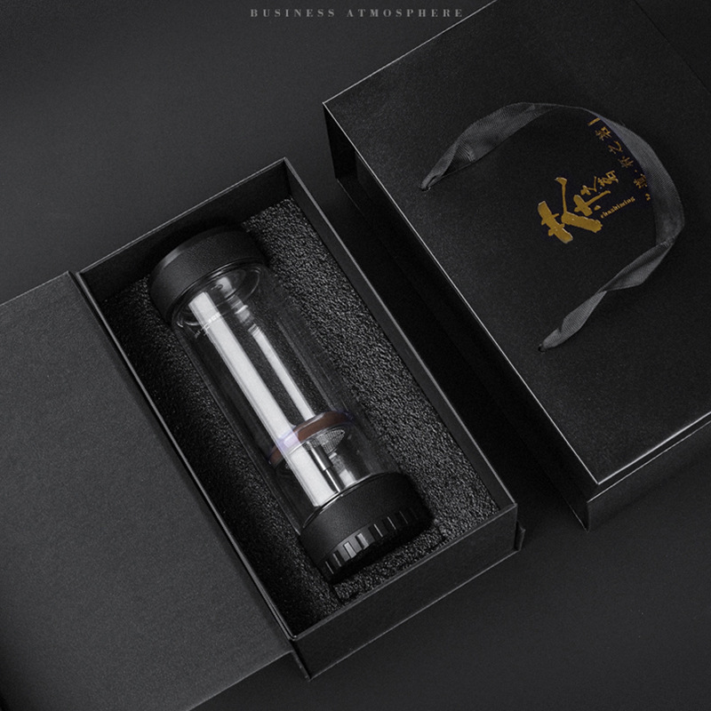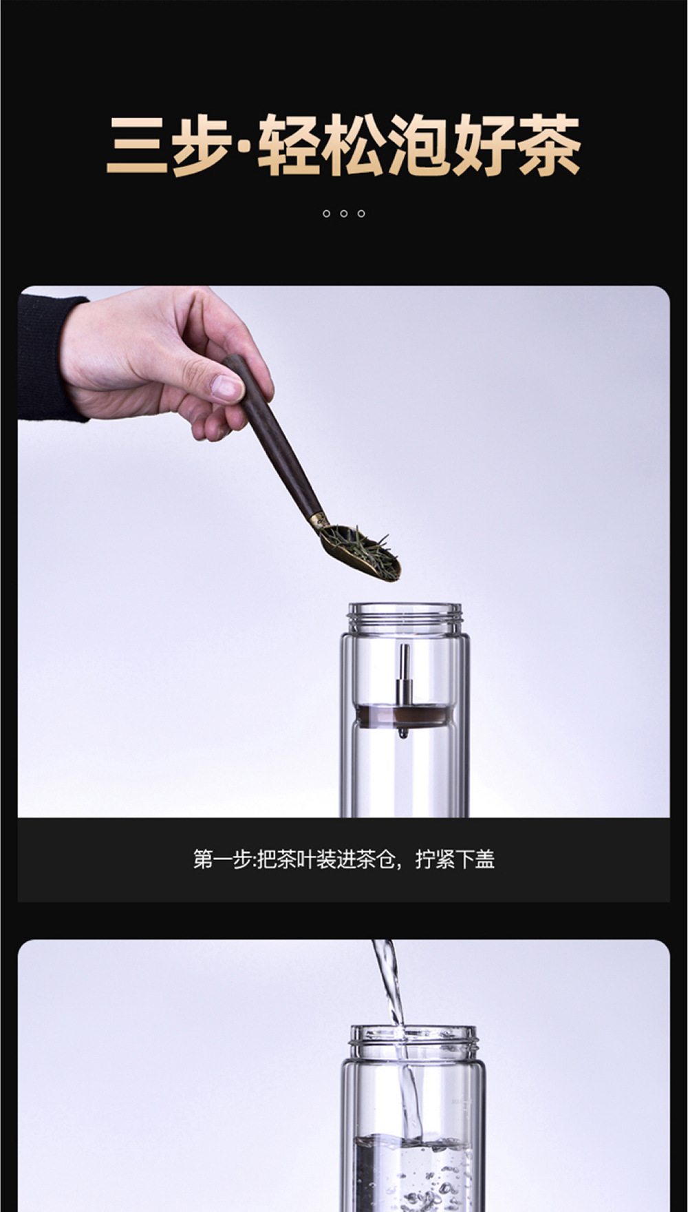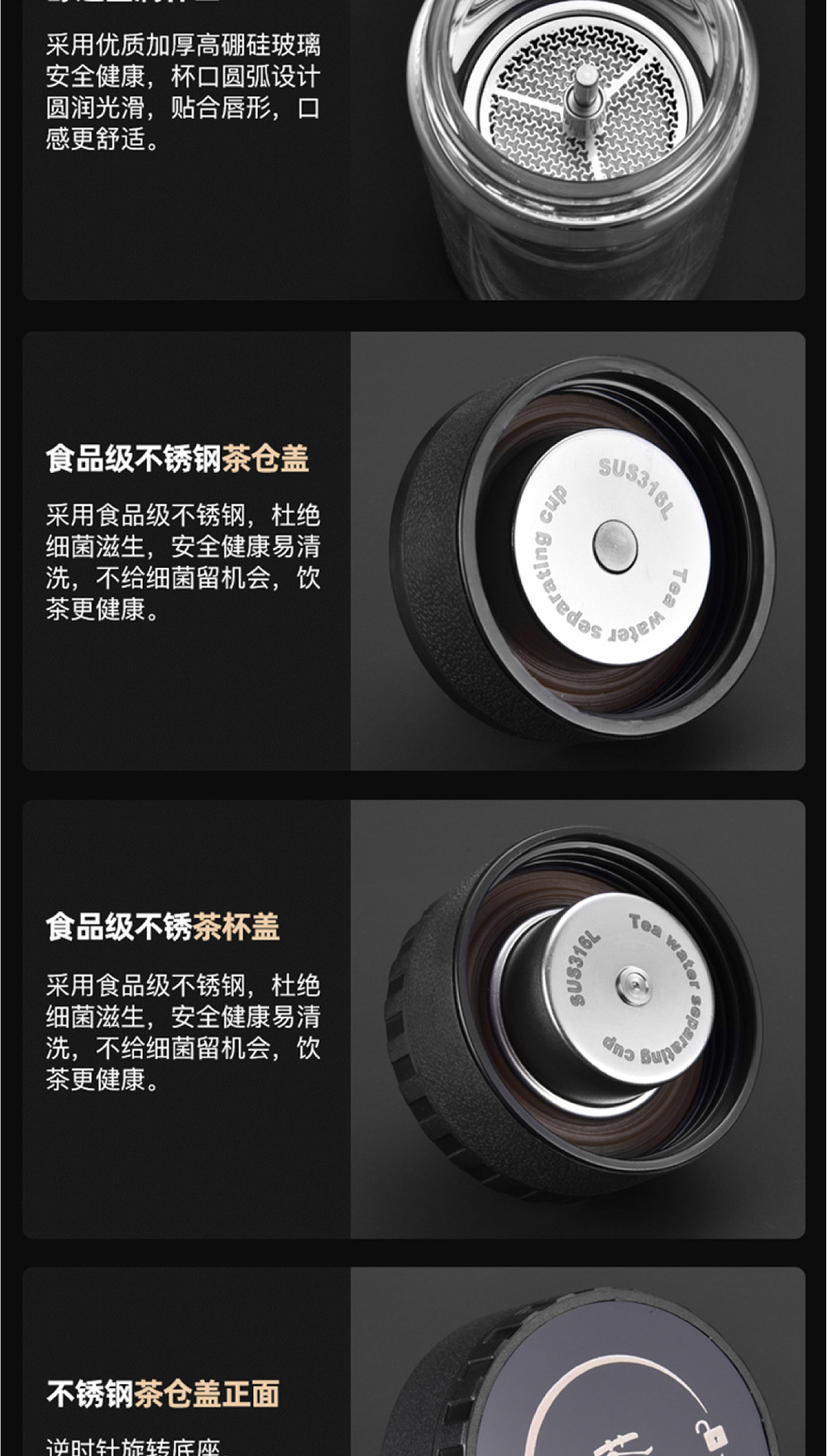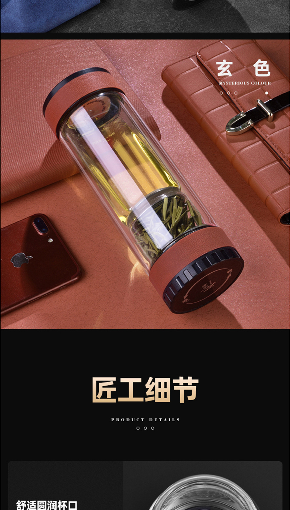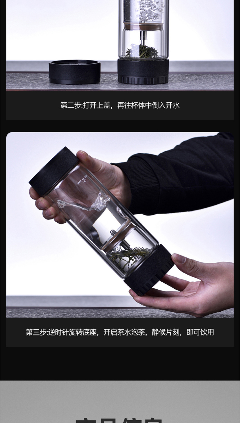 茶水分離泡茶師商務雙層玻璃杯定制禮品杯旋轉開關茶杯印logo水杯