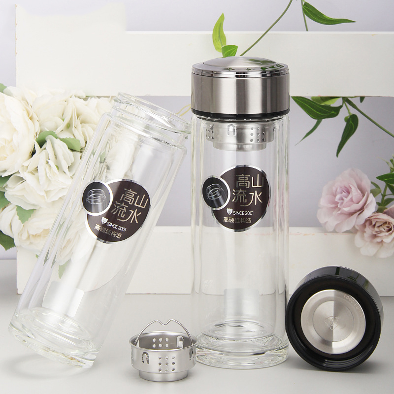 廠家批發定制LOGO 雙層高硼硅杯 厚底水晶杯