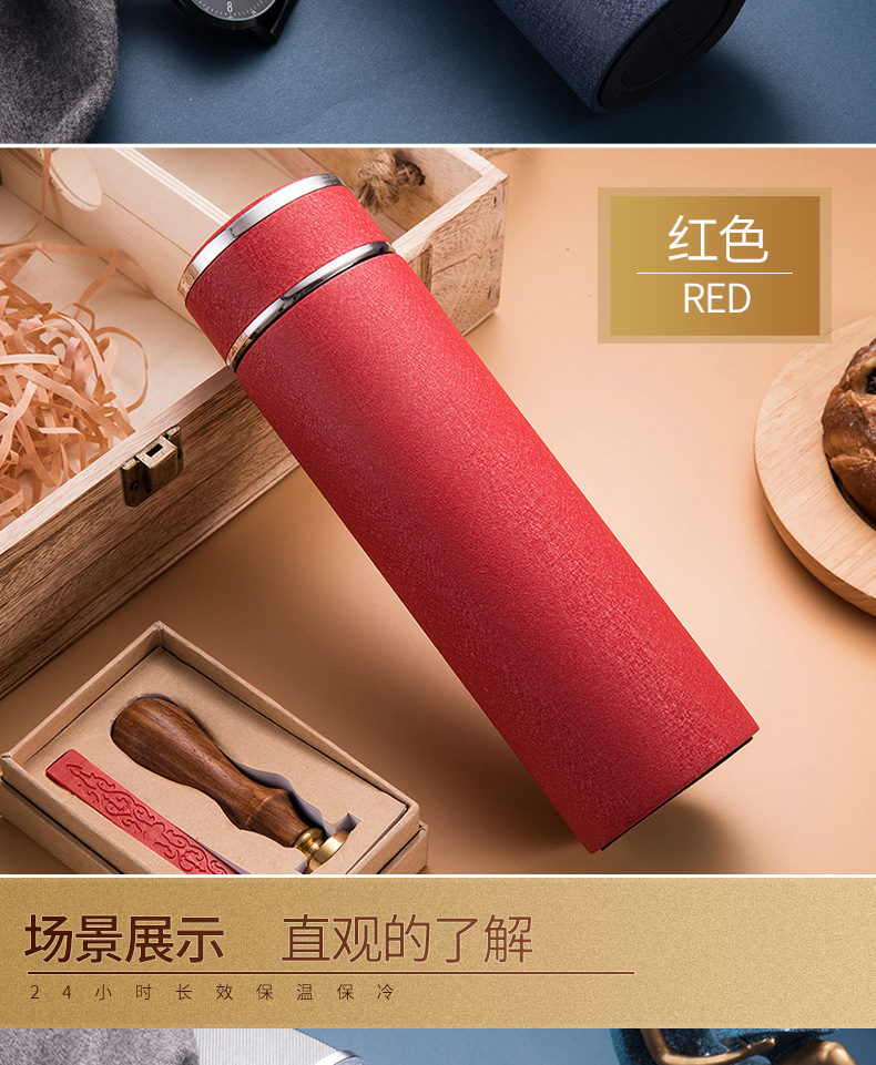 不銹鋼保溫杯冰花烤漆水杯廣告禮品定制杯子帶濾網印字