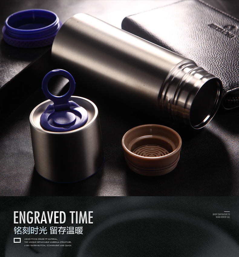 新款304不銹鋼高檔商務禮品保溫杯男便攜直身濾網茶杯
