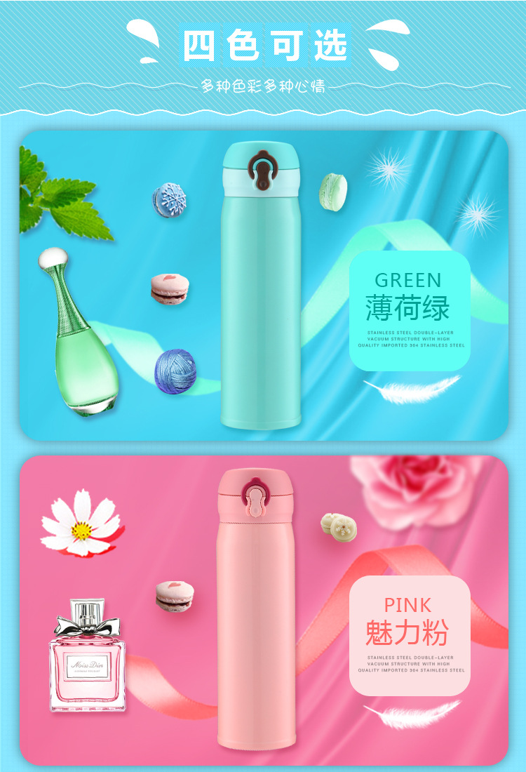 廠家直銷新款彈跳雙層不銹鋼保溫杯 直飲隨身杯 辦公車載杯刻字杯