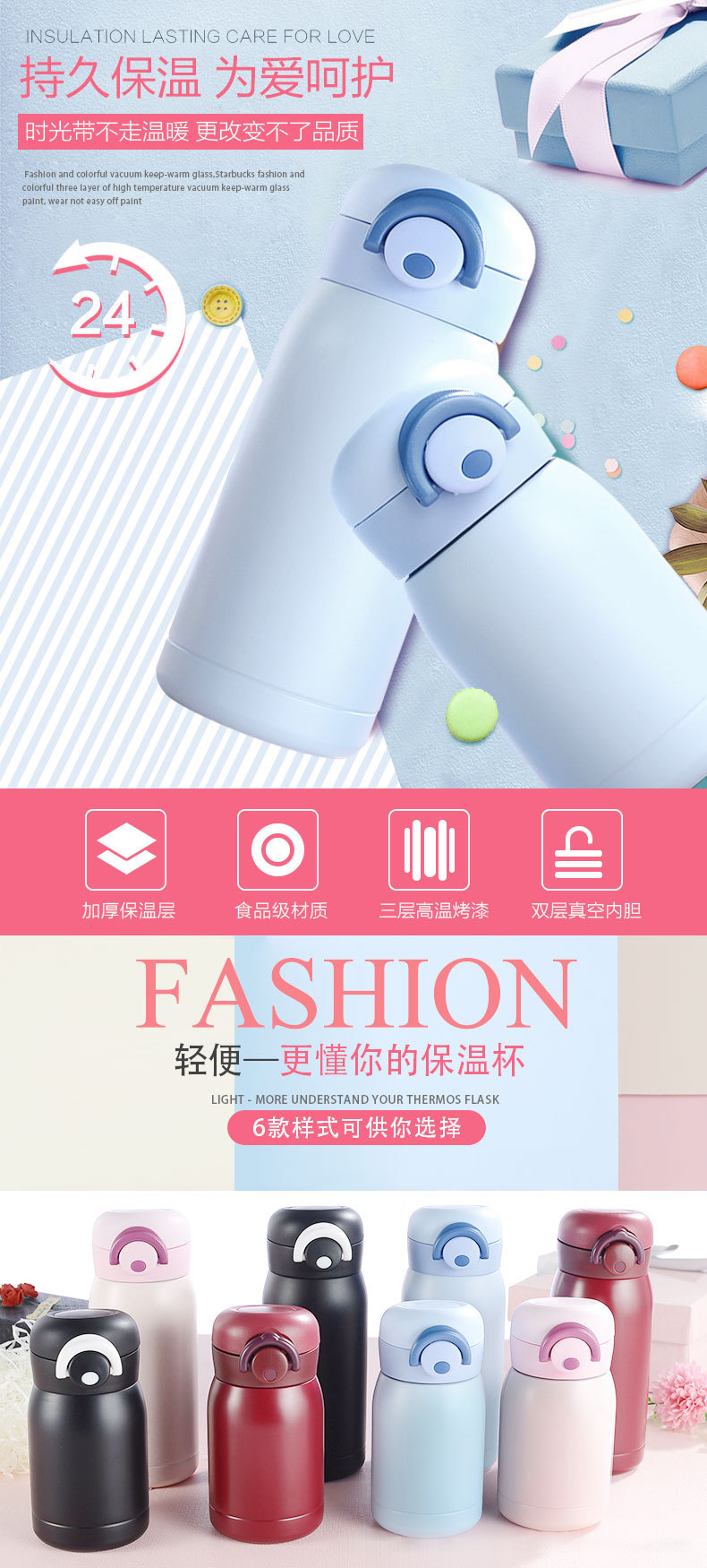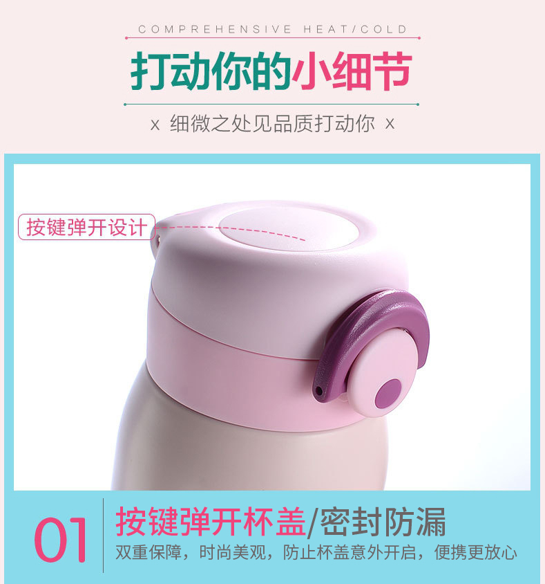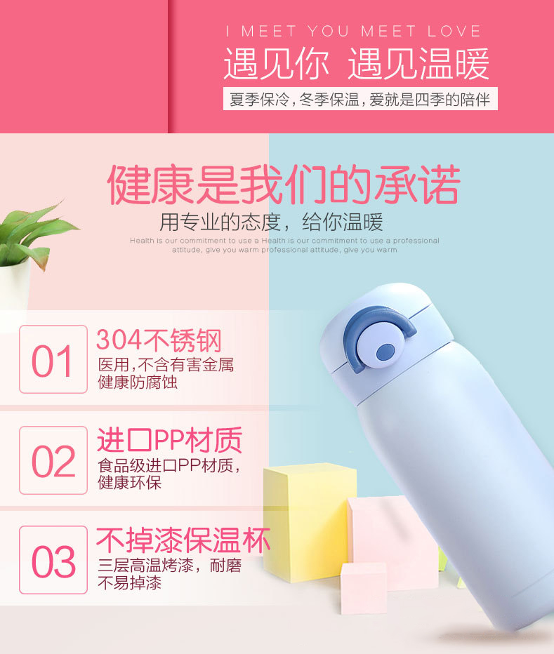 可愛(ài)彈跳不銹鋼雙層保溫杯304新款學(xué)生彈跳杯兒童隨手杯