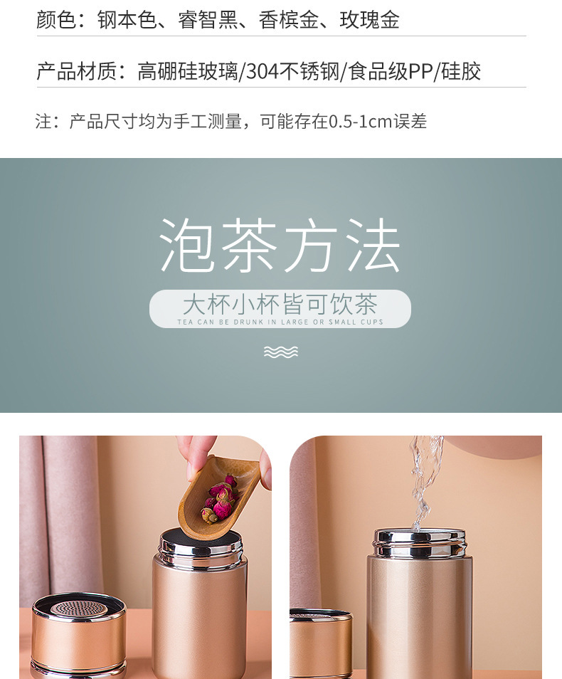 茶水分離杯便攜男士辦公泡茶水杯雙層玻璃杯創(chuàng)意商務(wù)禮品杯子定制