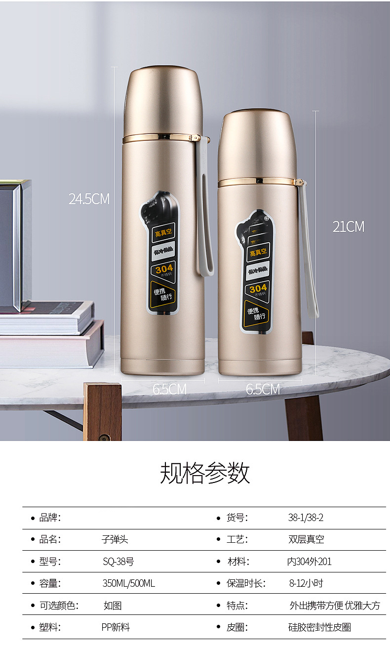 新款子彈頭水杯304不銹鋼真空保溫杯創(chuàng)意禮品杯子可定制日用百貨