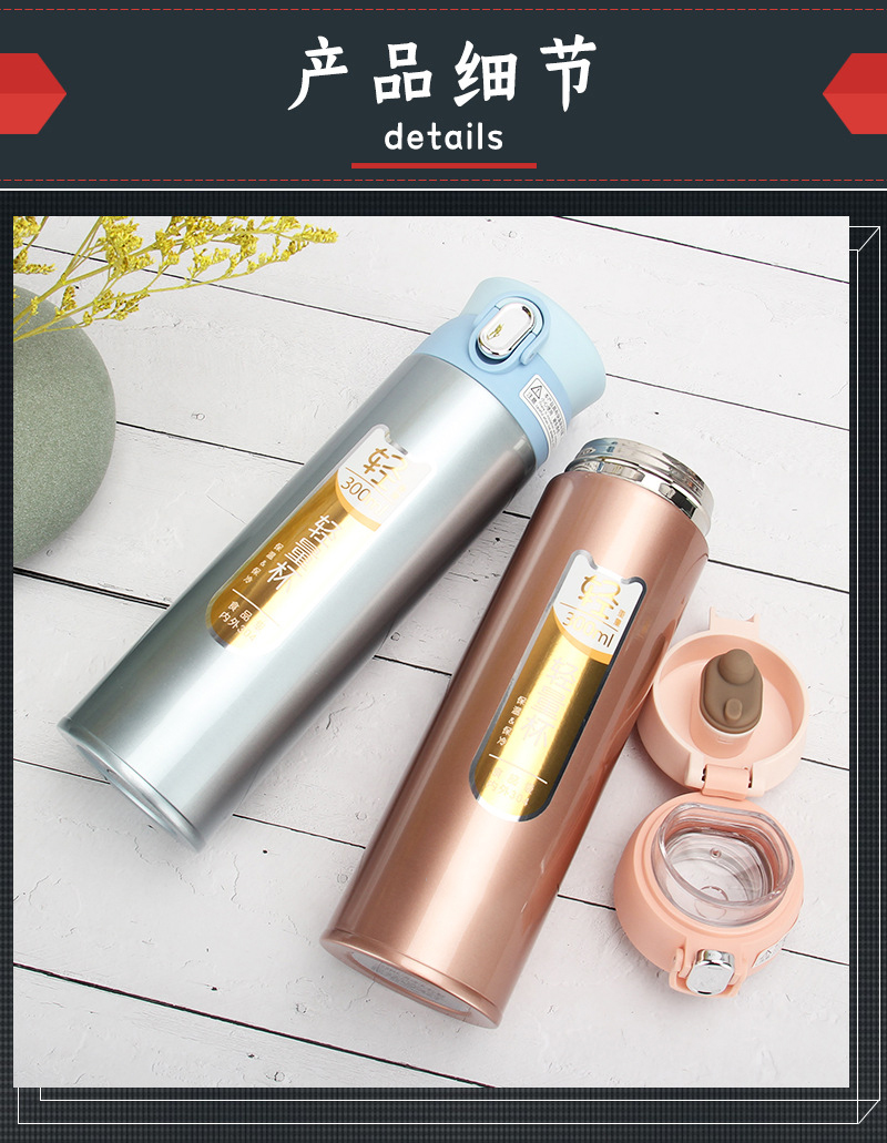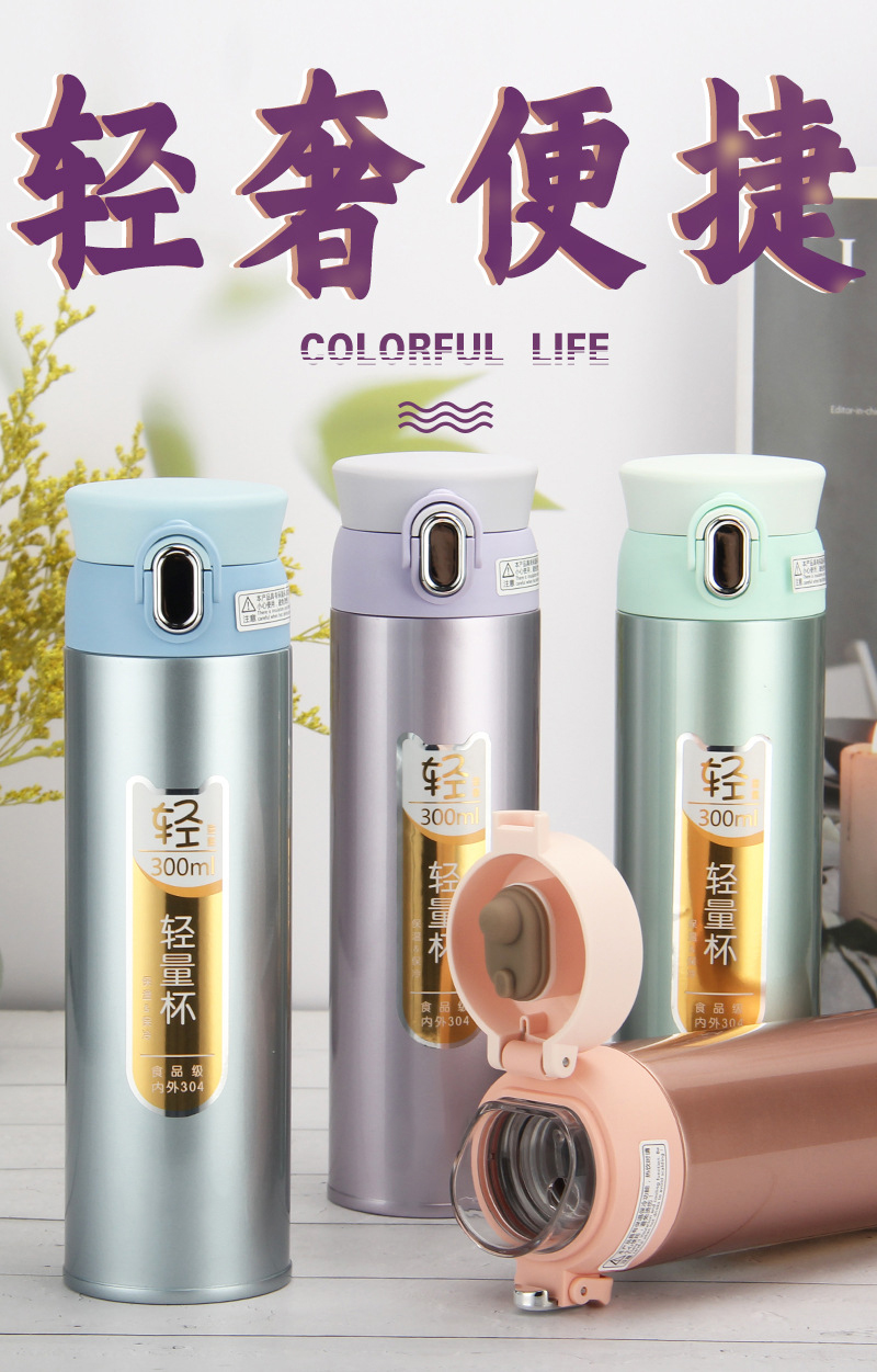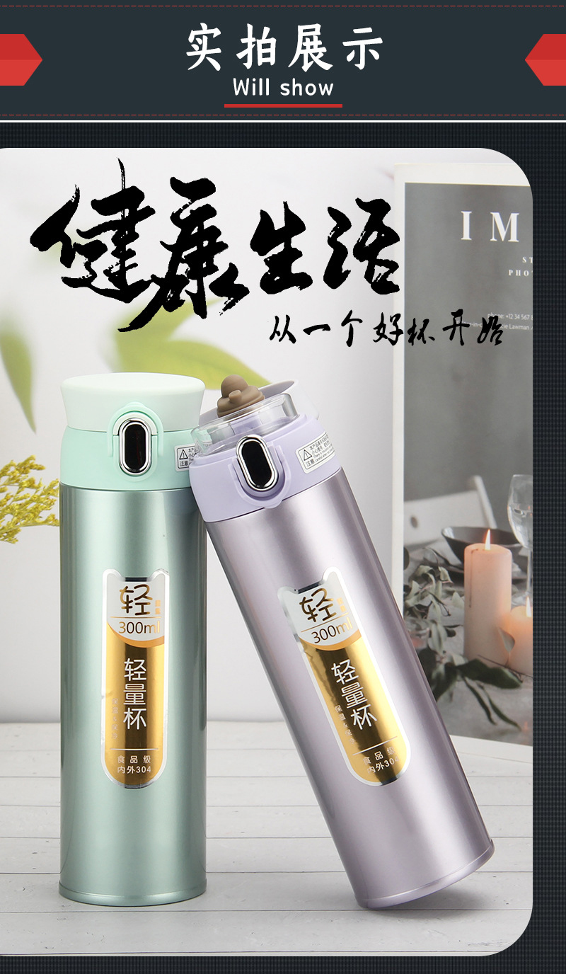 真空休閑杯不銹鋼保溫杯 兒童女士彈跳杯 直飲禮品杯