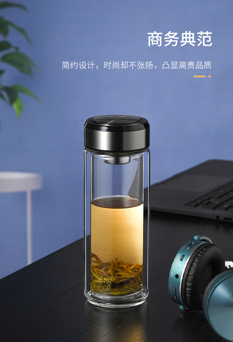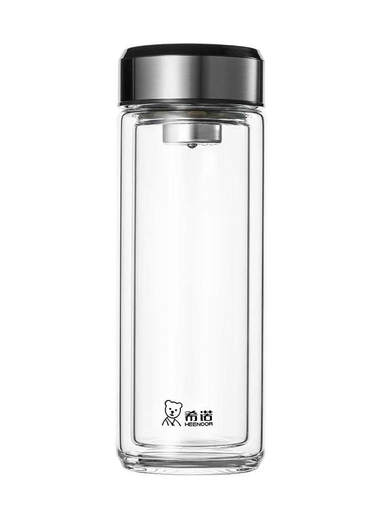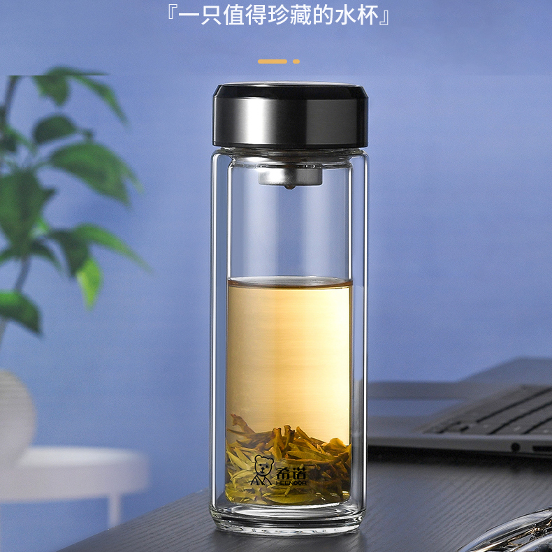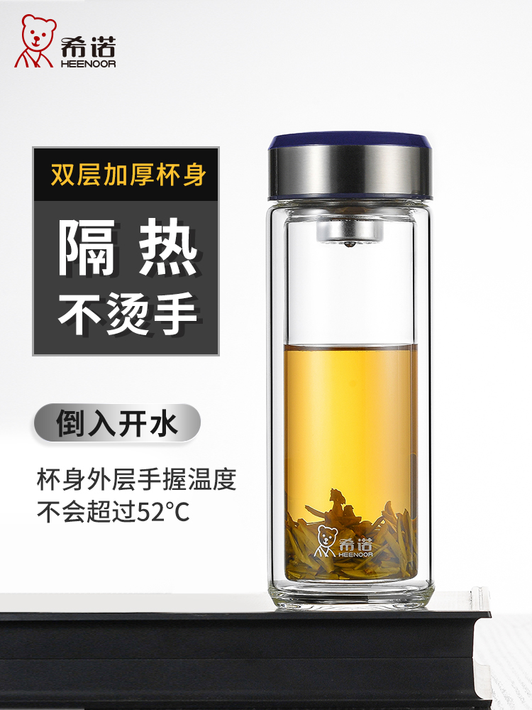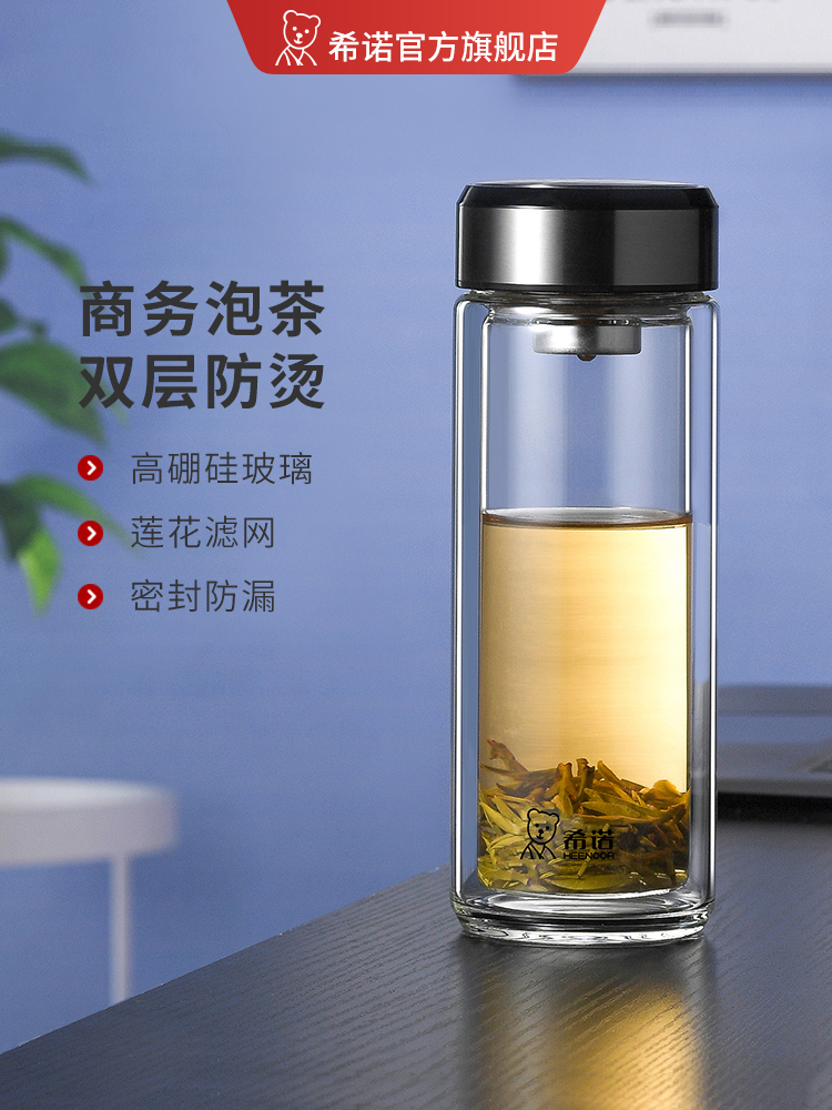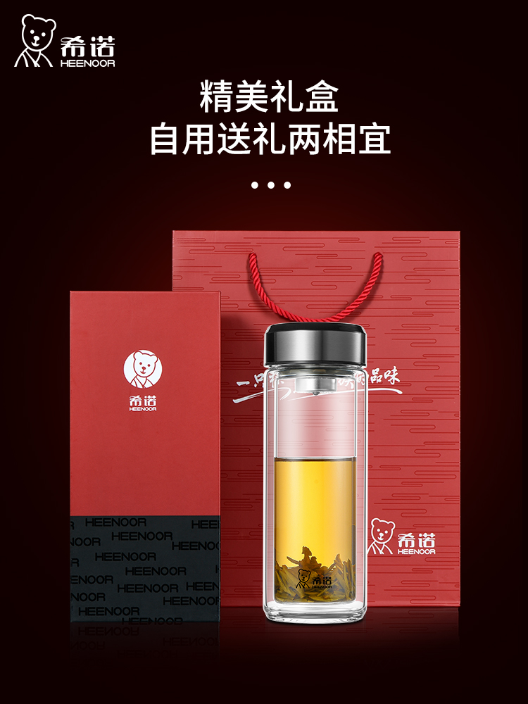 希諾雙層玻璃杯茶水分離水杯男家用透明過濾泡茶杯子高檔送禮商務(wù)