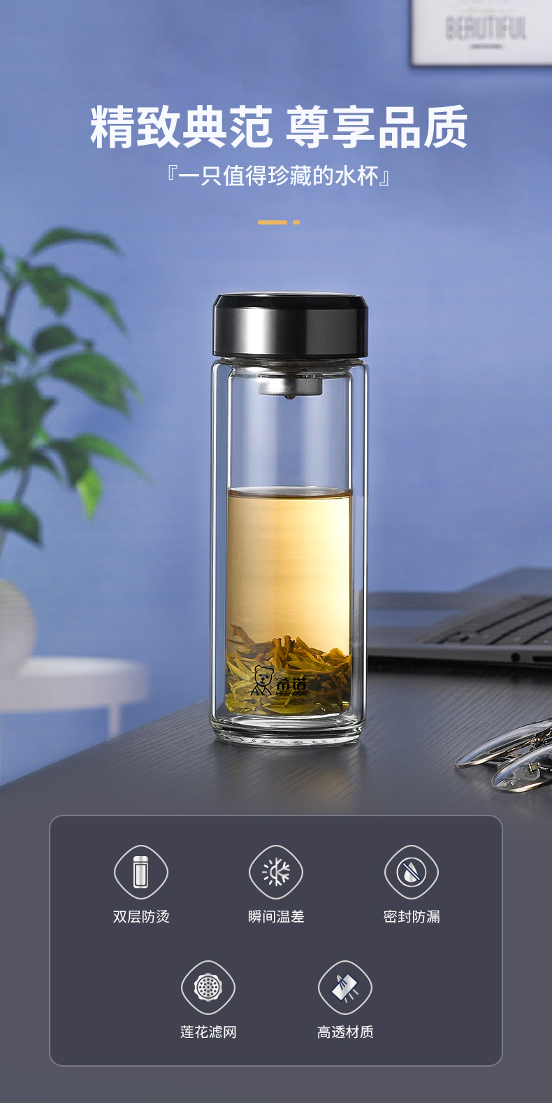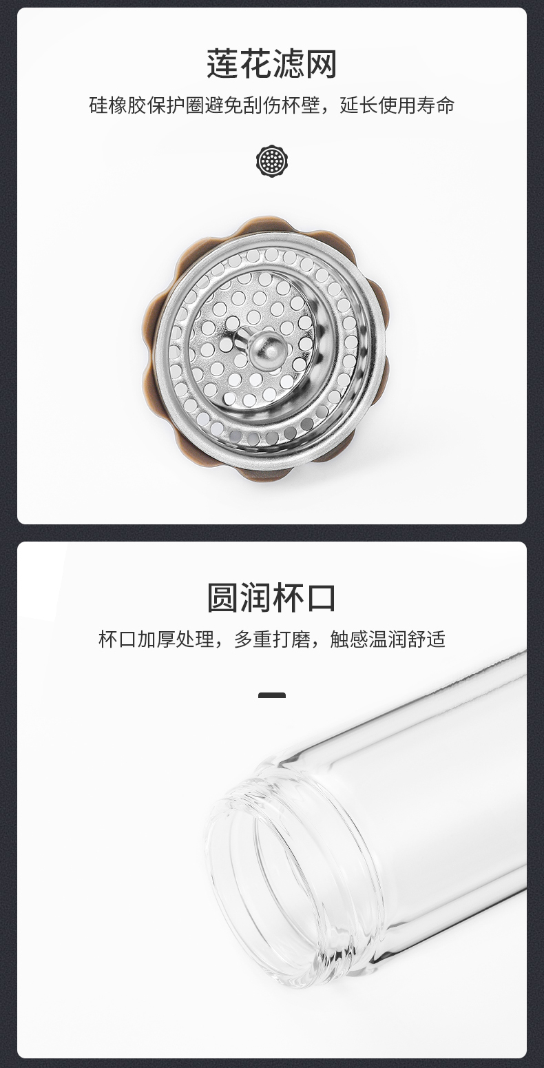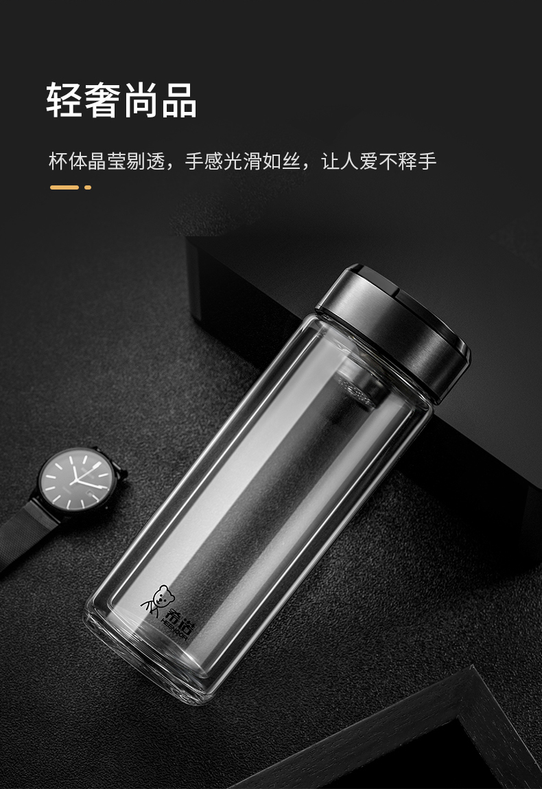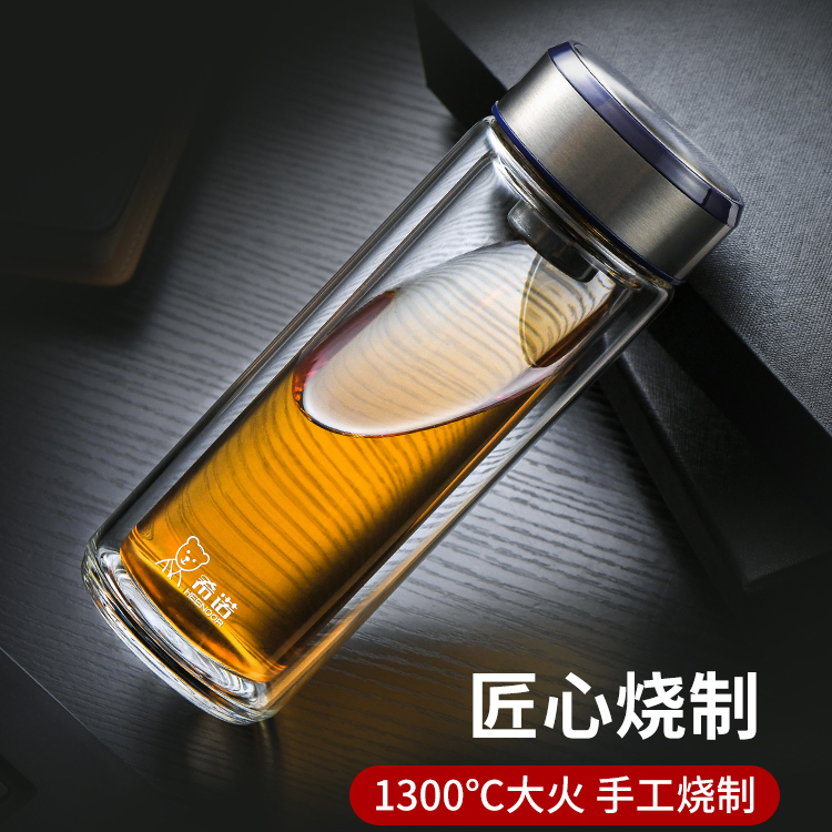 希諾雙層玻璃杯茶水分離水杯男家用透明過濾泡茶杯子高檔送禮商務(wù)