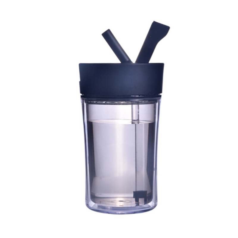 情侶咖啡杯創(chuàng)意水杯 辦公水杯 咖啡杯子 雙層塑料杯子 隨手杯 吸管杯