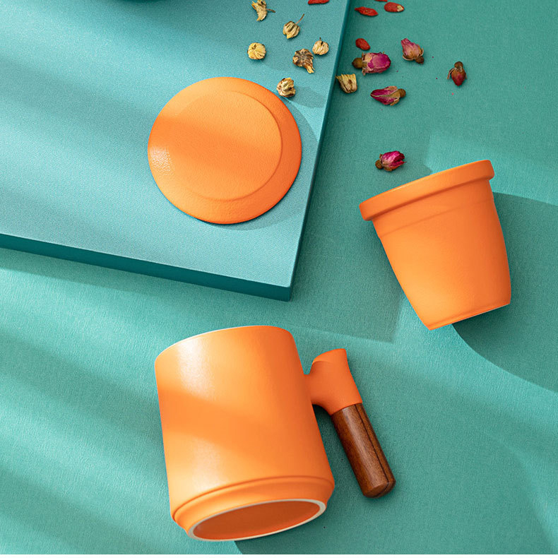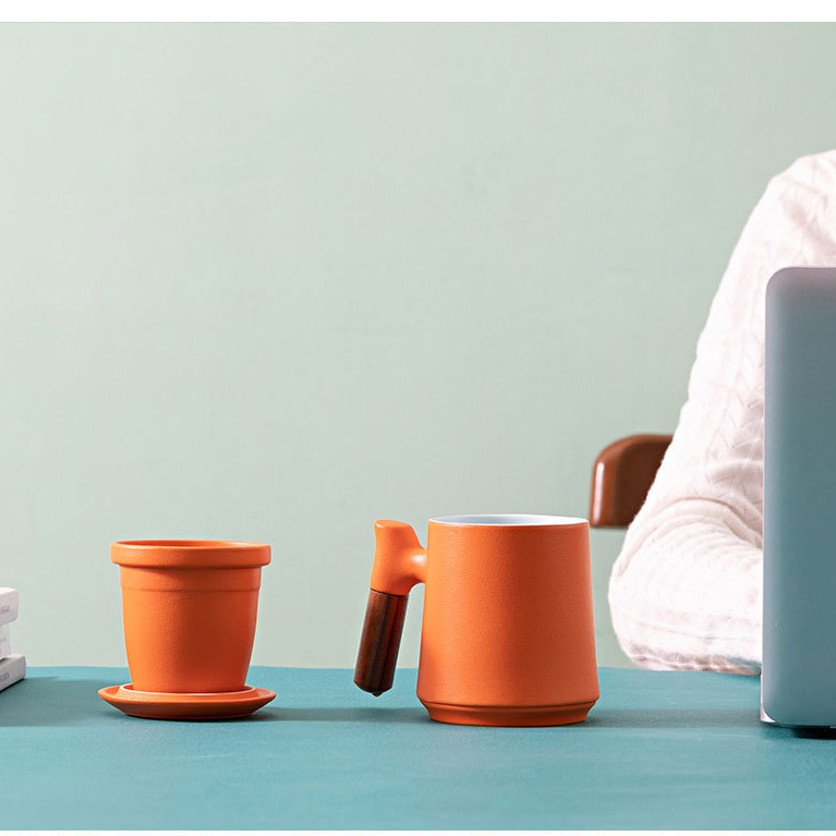 陶瓷馬克杯帶蓋過(guò)濾辦公杯個(gè)人杯茶水分離杯公司送禮禮盒刻字LOGO